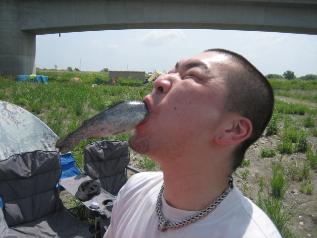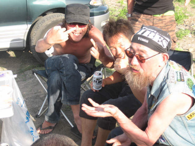 いや〜 行ってきたよ!CAMP! こんなCAMP バイク バイクと言えば男のロマン ハ〜レ〜 行ってビックリハ〜レ〜のCAMP 群馬の利根川のドテ ハ〜レ〜1000台くらい囲まれテントはったわいいが… 免許無し バイク無し 興味無しのワタクシは… 楽しかったっす!最高っす! メンツは? ワタクシ、タカシさん、ツヨシさん、チャンディカ、イノちゃん で!今回のキャプテンは 出た! なつかしの大技「人間ポンプ」 キャプテンらしく体はって鮎丸飲み イノちゃ〜ん もち、ポンプなんで鮎は無事生還 イノ中を大冒険した鮎は おつかれ〜鮎! 出た! ハ〜レ〜なら何でもオレに聞けみたいな 風格のあるビンテージもんのオッサン まぁ、語る語る 腰にぶら下げる鍵はもちろん… HONDA! 「おい!ビンテージ!」 「おめぇーはいったい何しにきてんだよぉ」って心で苦笑 サイダーだと思って飲んだら水かよ!みたいな… コーラだと思って飲んだらコーヒーかよ!みたいな… サクマドロップで出たのが白いのでハッカかと思って食べたらレモンかよ!みたいな… 悔しかったんだよ!オレは! そんな時は川を眺めよう! カワ ナガメーノ イシ ヒロイーノ ナゲーノ! ハイ!ナゲーノ! コレはインターナショナルなんだねー 何段チャポンチャポンさせるか! 気になるでしょ? チャンディカが何チャポンか? タカシさんは6チャポンぐらいいってたよ チャンディカは… 2チャポン 大した事はありません 夜もふけ ヤキーノ クイーノ ノミーノ コーナリーノ! キャプテン 体はるはる! チャンディカとワタクシは 1981年生まれ 身長は185と186 フゥーーーーあっぶね! 1cm勝った! チャンディカの喜ぶ顔はキュートね! 生まれて初体験 そしてCAMPといやー テント&寝袋!!! いーんですよ!いーんですよ! 寝心地 もうガン寝! 実はこんな出会いも ヤックンとパパ 二人でCAMPに来てた淋しそうな姿を見かけたキャプテン 「一緒にやりましょーよ」と一声! 二人もセッションしてたんですねー Good morning! 朝からBBQ います??? こんな方??? 朝一からフライパン振ってくれる人! しかも、笑顔! いーですねぇー 3食BBQもテントも寝袋もいーもんだね! 3食BBQすりゃ体も臭いは だから、温泉にね、つかりに行ったわけなんです が! 気温は27℃のピーカンで日焼けよ! 3分ぐらいが限界よ! 疲れきったCAMPERは… おつかれさん、オヤスミzzz そんな中サウナの中腹筋をしていた彼… 今回も彼でお別れです ツナ缶 ハ タンパク質 プロテインデース!