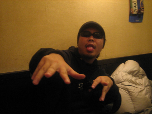 毎週恒例の飲み♪ そして今日はマイメン「トシ」地元高州にまた戻ってきました! それでsevenparkメンバーと一緒にお祝いです! トシとは幼児教室からの仲で今付き合ってる友達の中で一番長い付き合い これからは彼女の「ゆかちゃん」も一緒に住むってことでいいねぇ〜! 「歯ブラシ買った〜?」とか言いながら完全にのろけ・・・ 幸せそうでなによりです☆ これからも仲良くやるんだよー! 「toshi & yuka」 明日六歌仙EVENT「GOOD MOONING」 です。 もちろん二日酔い覚悟で行きますよ〜! やべーLIVE期待してるかんなー 気になる人は千葉BELTに集合〜♪ それで一緒に今年最後のクリスマスナイト楽しもー☆ | カレンダー